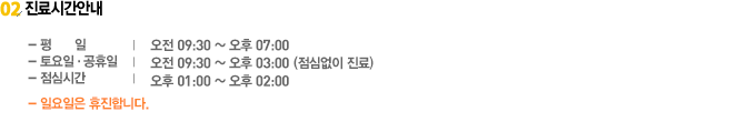 ÇöÀçÀ§Ä¡ : Home > ÇÑÀÇ¿ø¼Ò°³ > Áø·á¾È³» & Áø·á½Ã°£